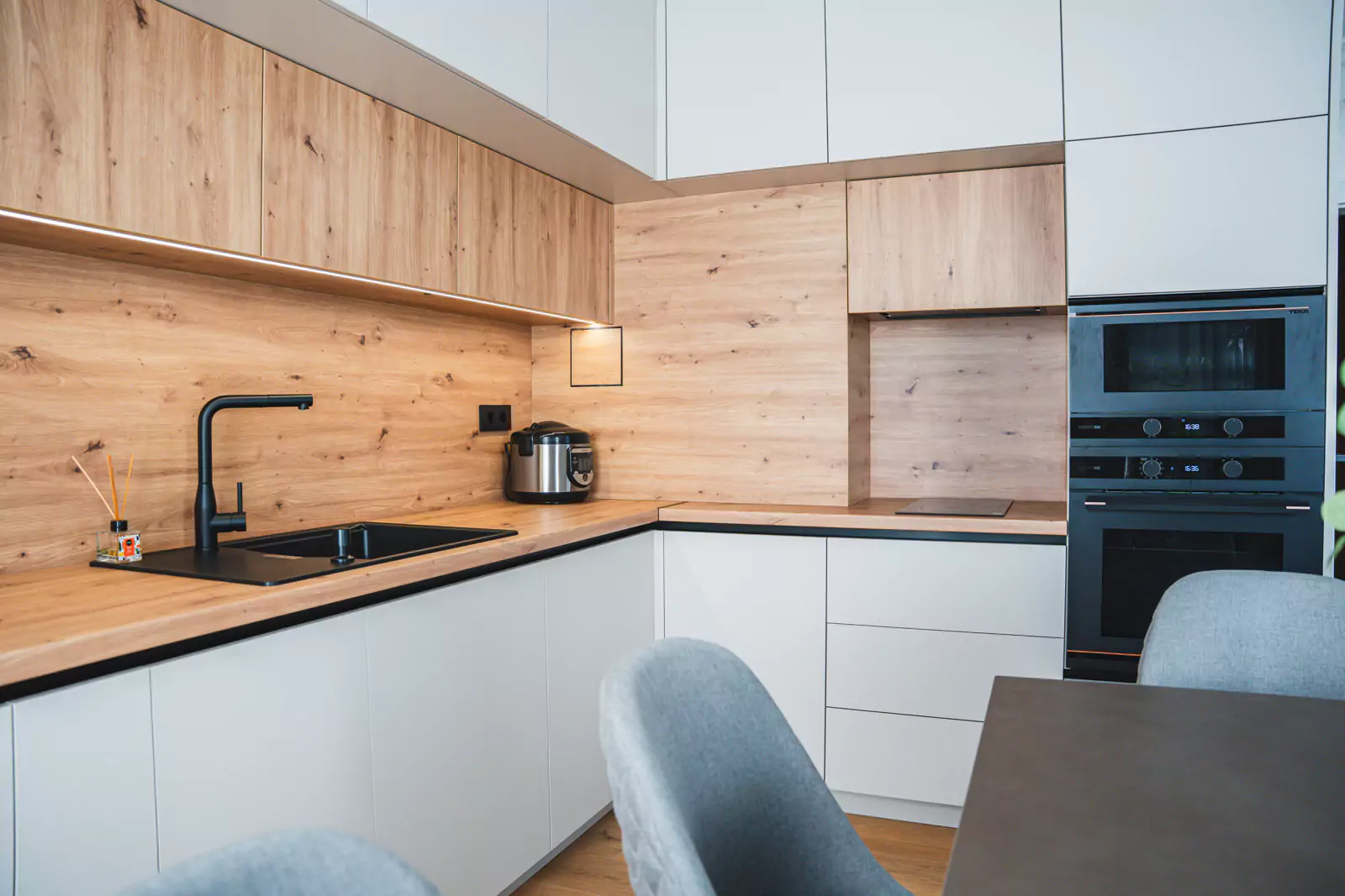 Изчистен дизайн, топли тонове и функционални решения, създадени с прецизност и внимание към всеки детайл. От кухнята до спалнята – всичко е в синхрон и с характер.